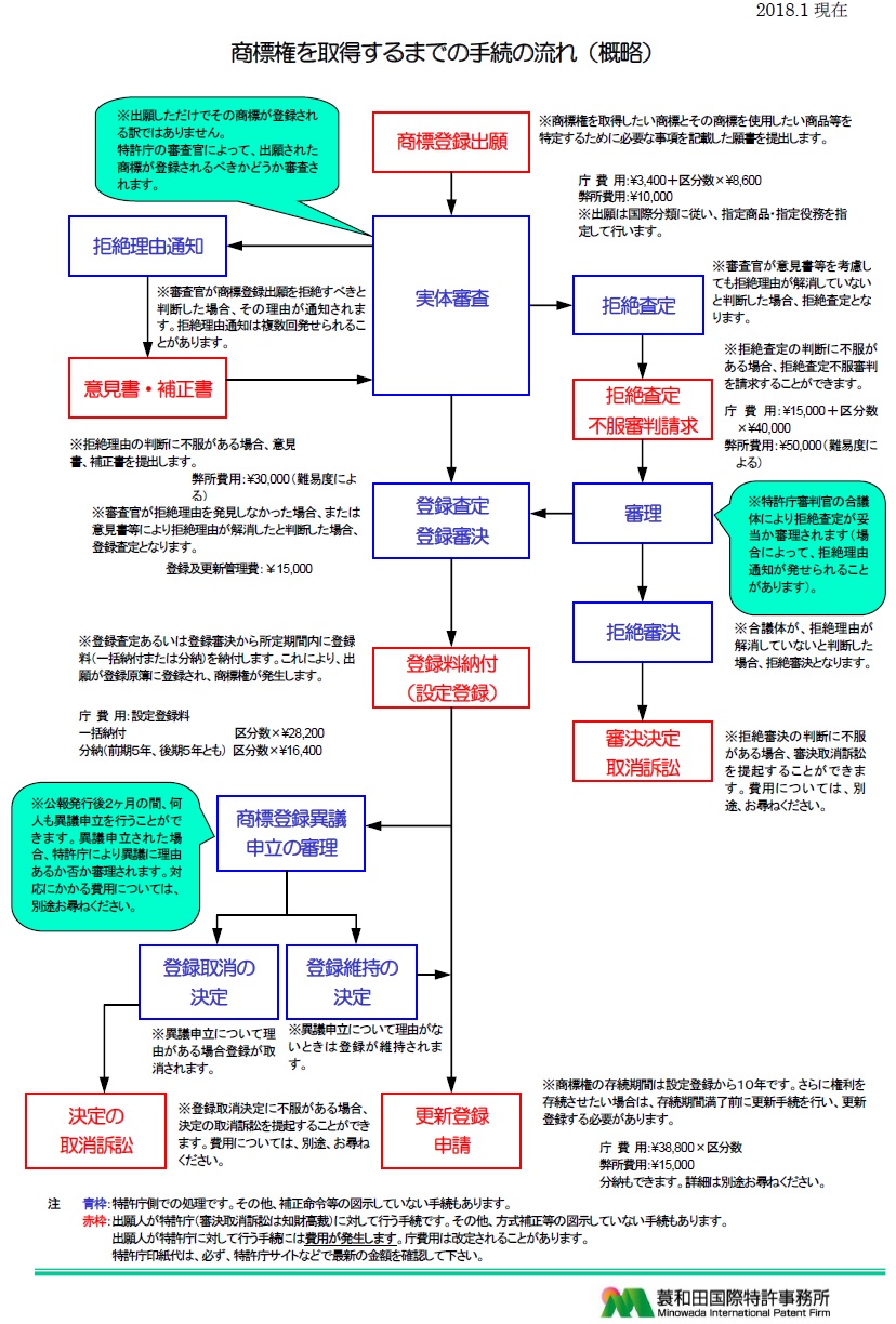 以上がご依頼から出願、その後の商標権取得・更新までの典型的な流れになるかと思います。